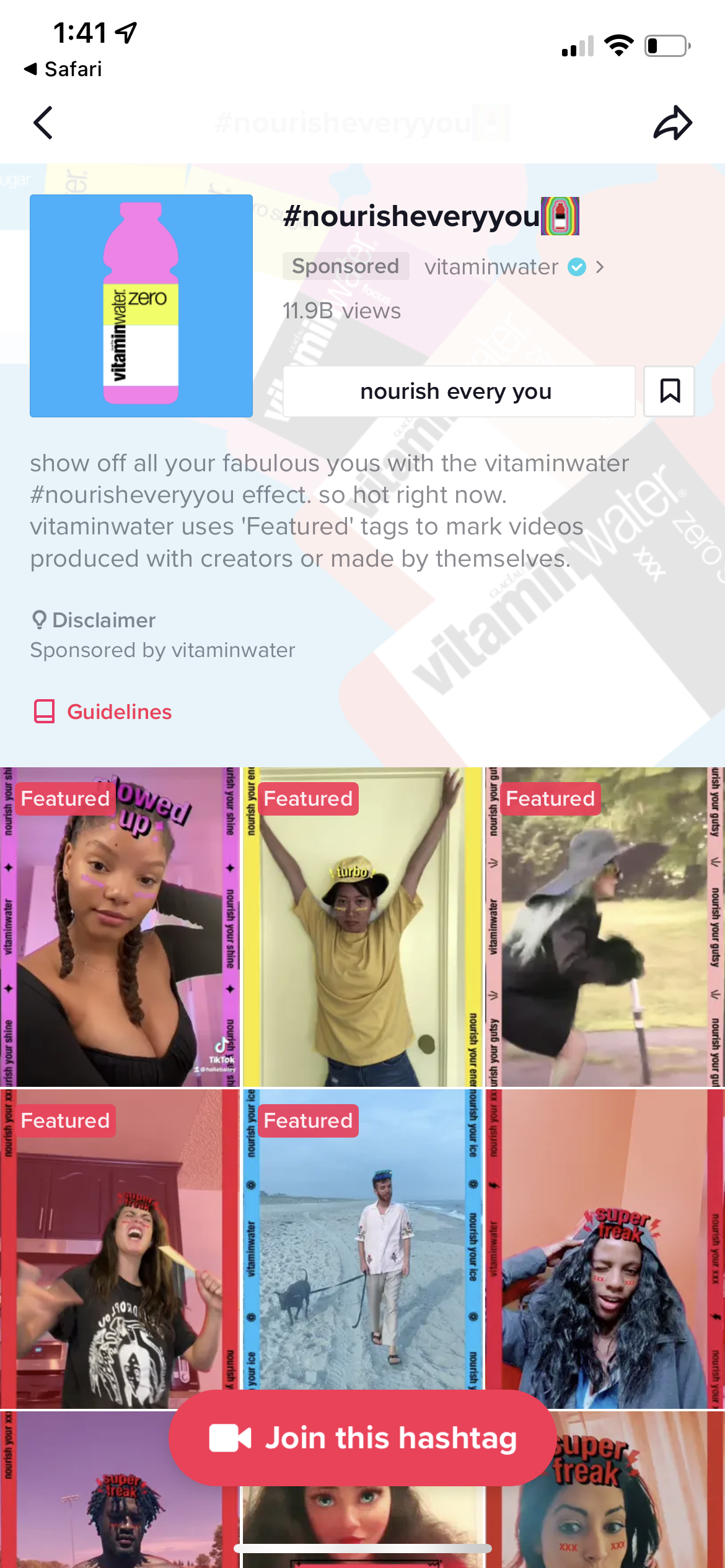 Engaging with prominent TikTok creators like Victoria Paris, Shiadanni, Leenda Dong, Halle Bailey, and Josh Helfgott, the campaign leveraged user-generated content to spread its message. Each creator used the Vitaminwater #nourisheveryyou branded effect in their unique, entertaining ways, effectively promoting the brand's message across the platform.